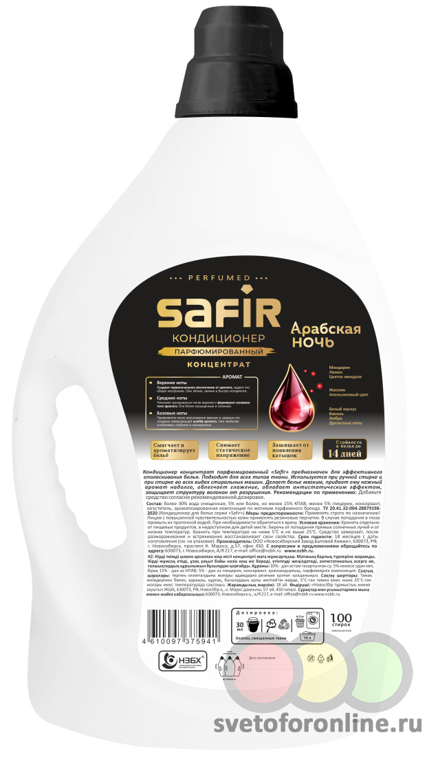 Кондиционер концентрат парфюмированный Safir 3k ПНД miх НЗБХ ООО (Новосибирск)производитель) - Купить в магазине "Светофор" город Калуга, ул.Болдина, 69